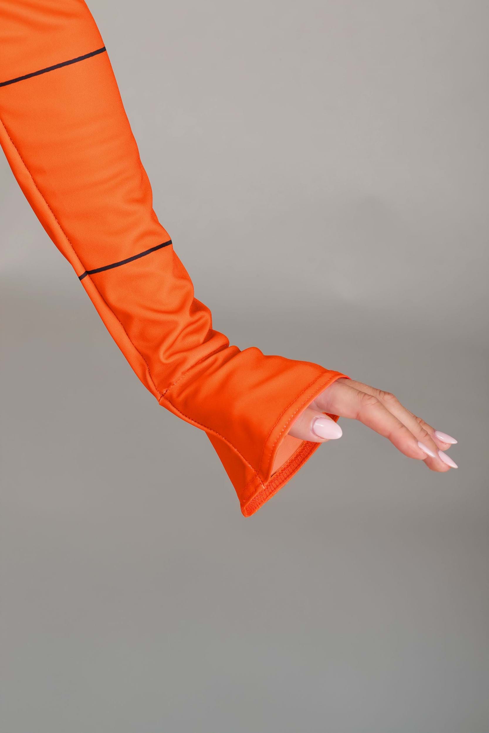 Let’s start with the attitude—and the hair. The synthetic wig is styled just like Angelica’s unforgettable pigtails, complete with purple bows (because of course). The costume comes with a long-sleeve orange shirt and polka-dotted blue leggings made of stretchy knit fabric to give you a snug, cartoon-like silhouette that’s comfy enough for real-world rampages.
