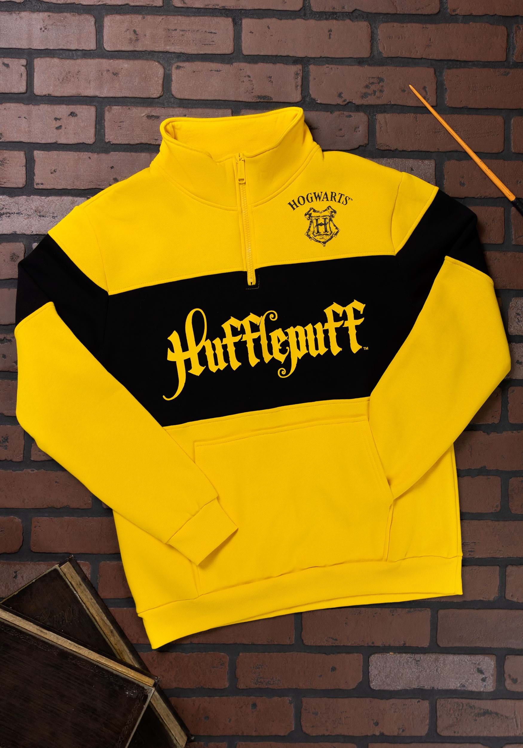 This is an Adult Cakeworthy Hufflepuff 1/4 Zip Sweater.