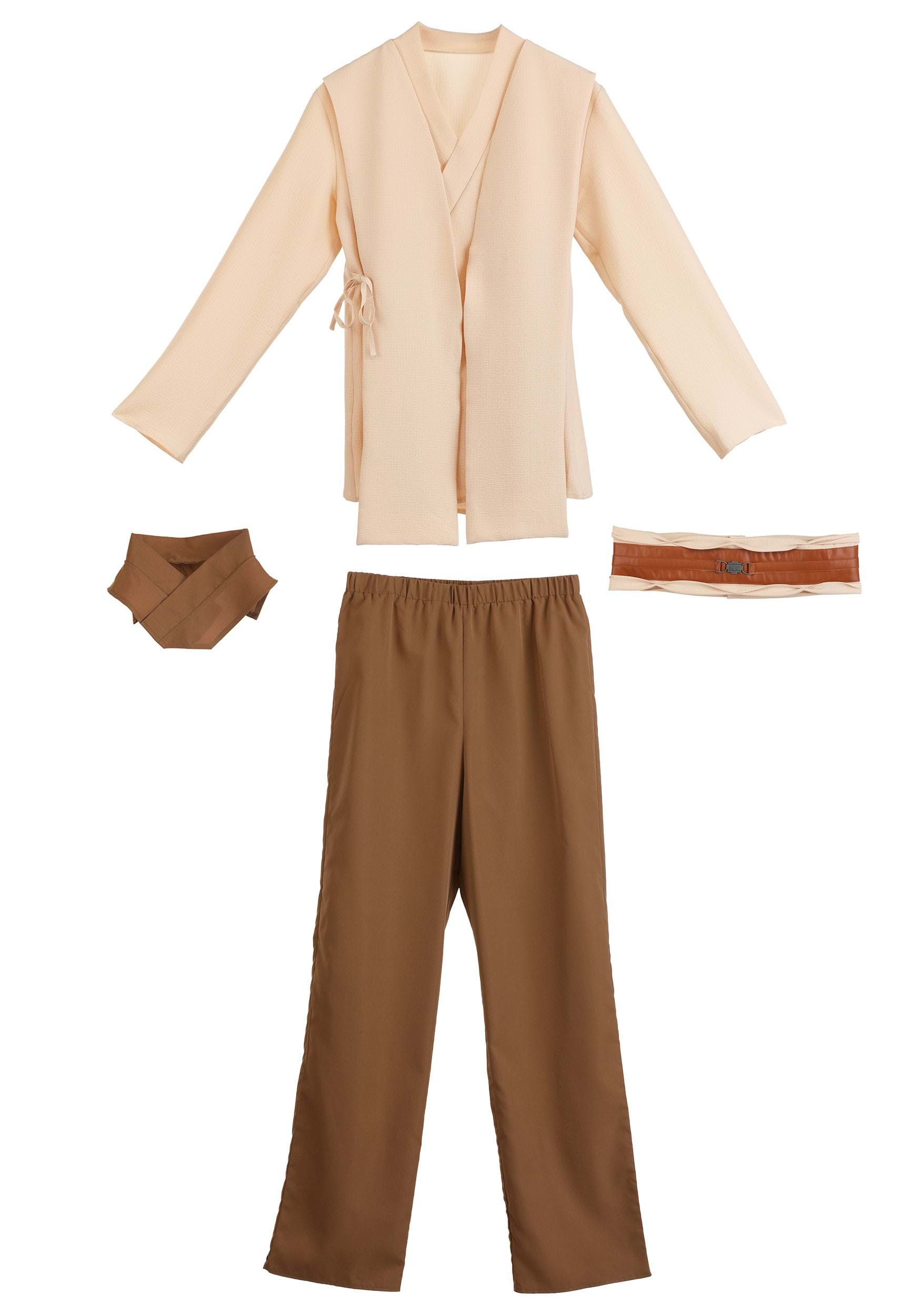 Interior ties are built in, securing the tunic comfortably around the torso and keeping everything in place during galactic negotiations. To complete the layered illusion, the costume includes a dickie that mimics the look of the Jedi undershirt. Polycotton pants with an elastic waistband make for easy movement, whether you're swinging a lightsaber or avoiding your boss at the Halloween party.