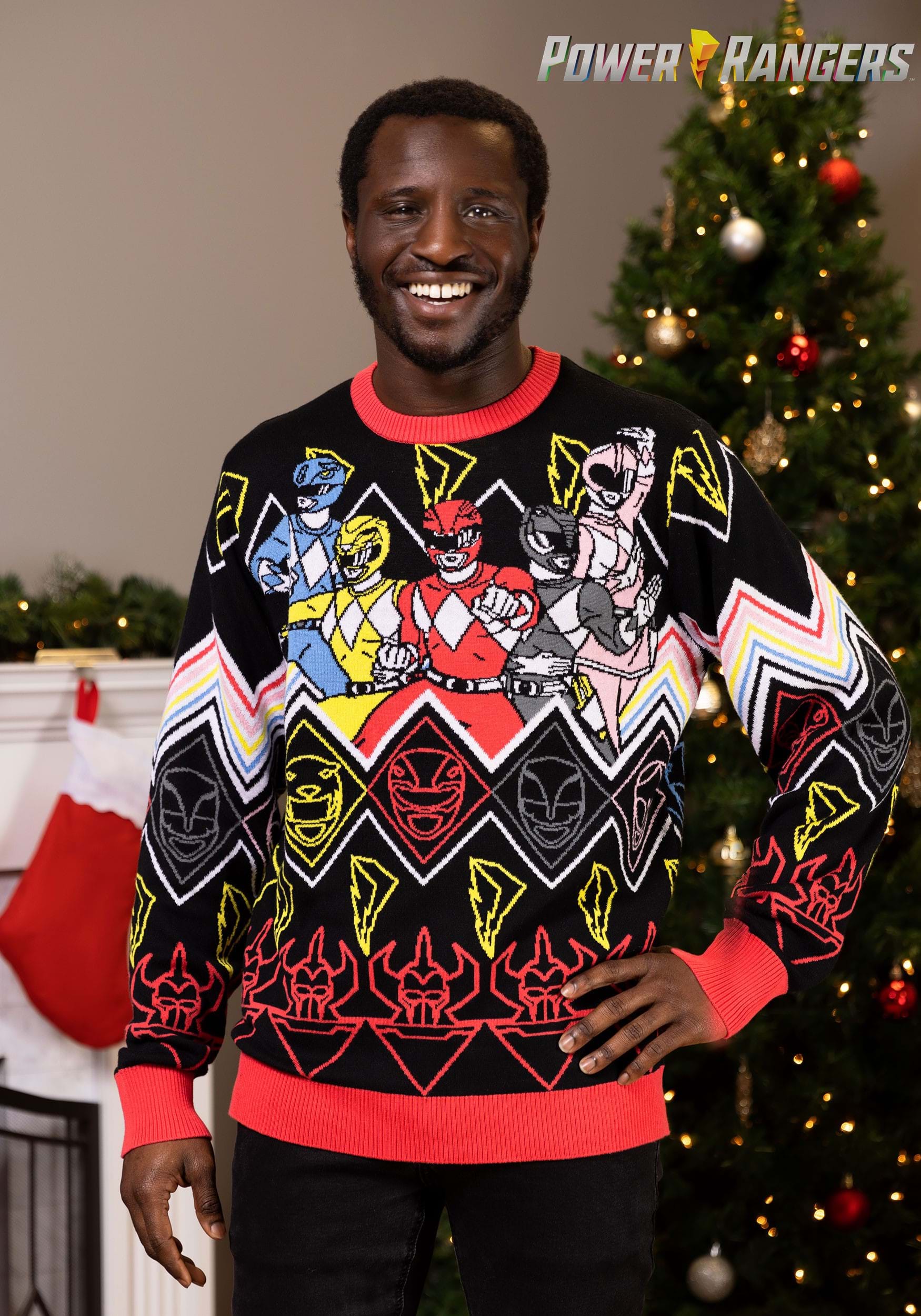 Never fear that you will be underdressed for saving the galaxy. You'll have this Heroic Pose Power Rangers Sweater! This Made By Us design is a poly-cotton blend that assures stylish comfort while giving you a superhero edge. Bright red cuffs and a matching waistband create a perfect fit while the collective Power Rangers perform their classic victory pose on the front. If you're a lover of action, adventure, and comfy couture, this sweater is for you!