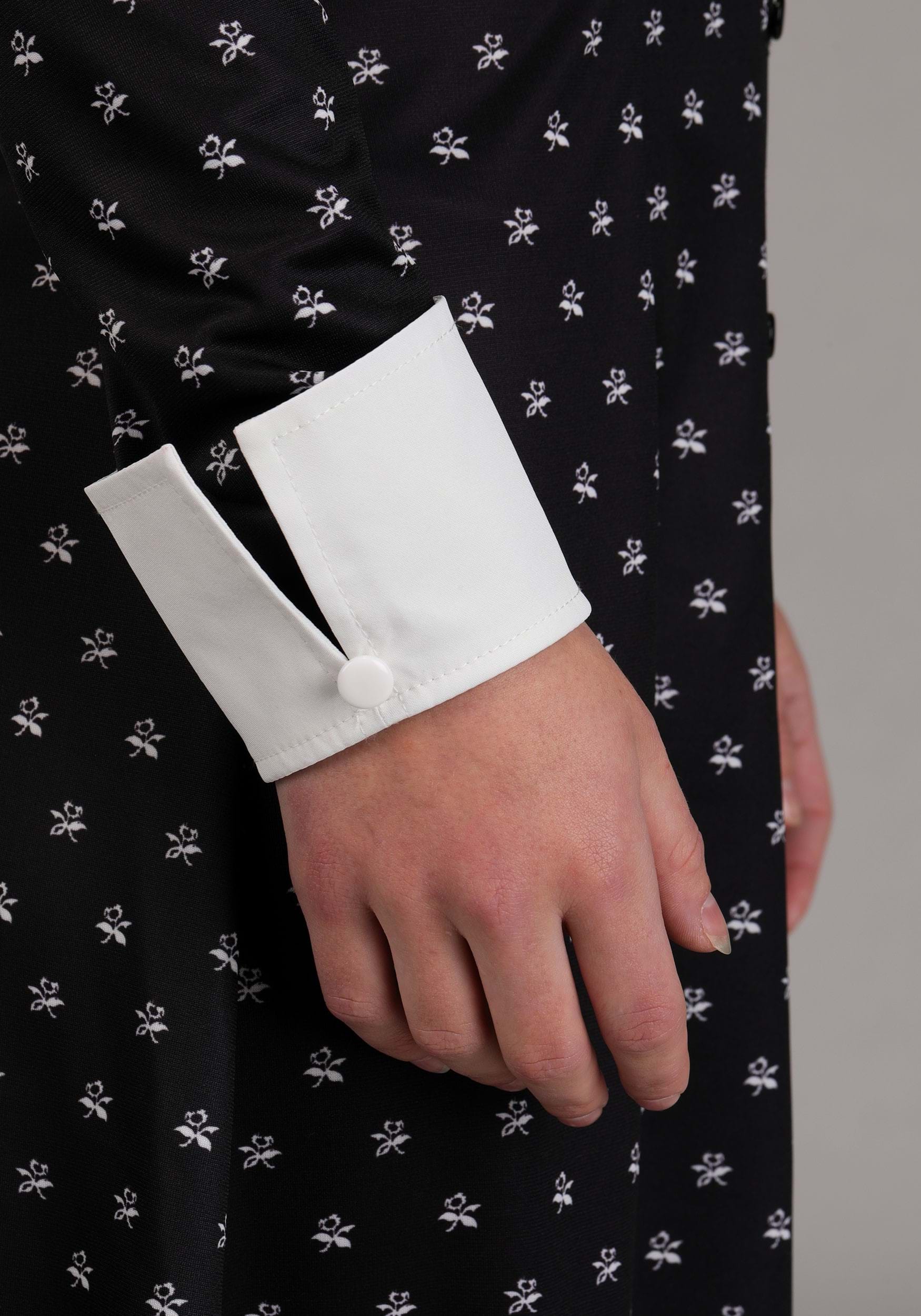- Sharp broadcloth collar shape, waist shaping darts, broadcloth white sleeve cuffs