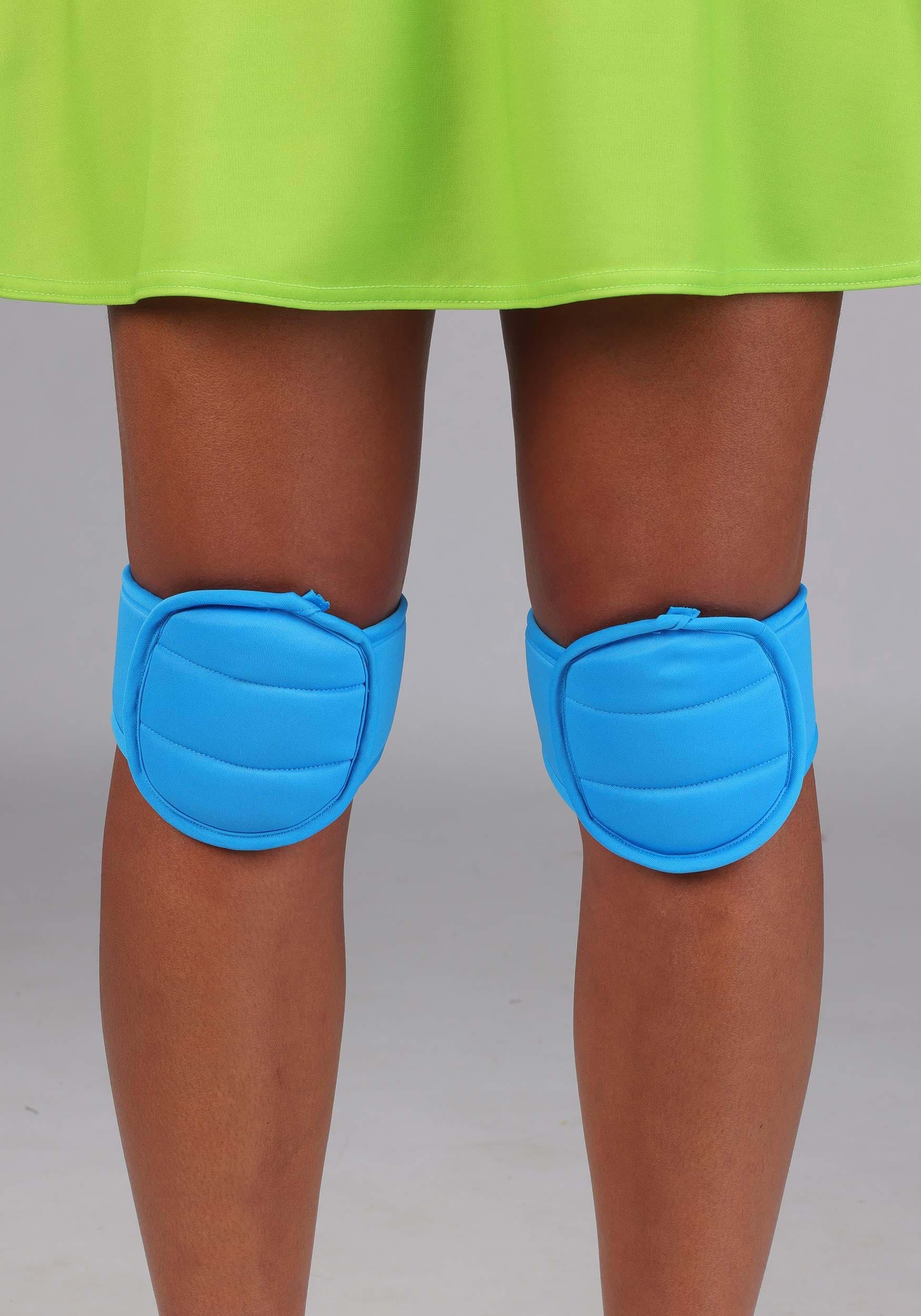 The officially licensed costume includes a green stretch-knit dress printed with muscle and shell detailing, plus an attached belt at the waist with Leo’s signature “L” emblem front and center. Light blue kneepads bring that battle-ready look, while the fingerless gloves give your hands some turtle-tough flair for whatever ninja business (or dance floor battle) lies ahead.