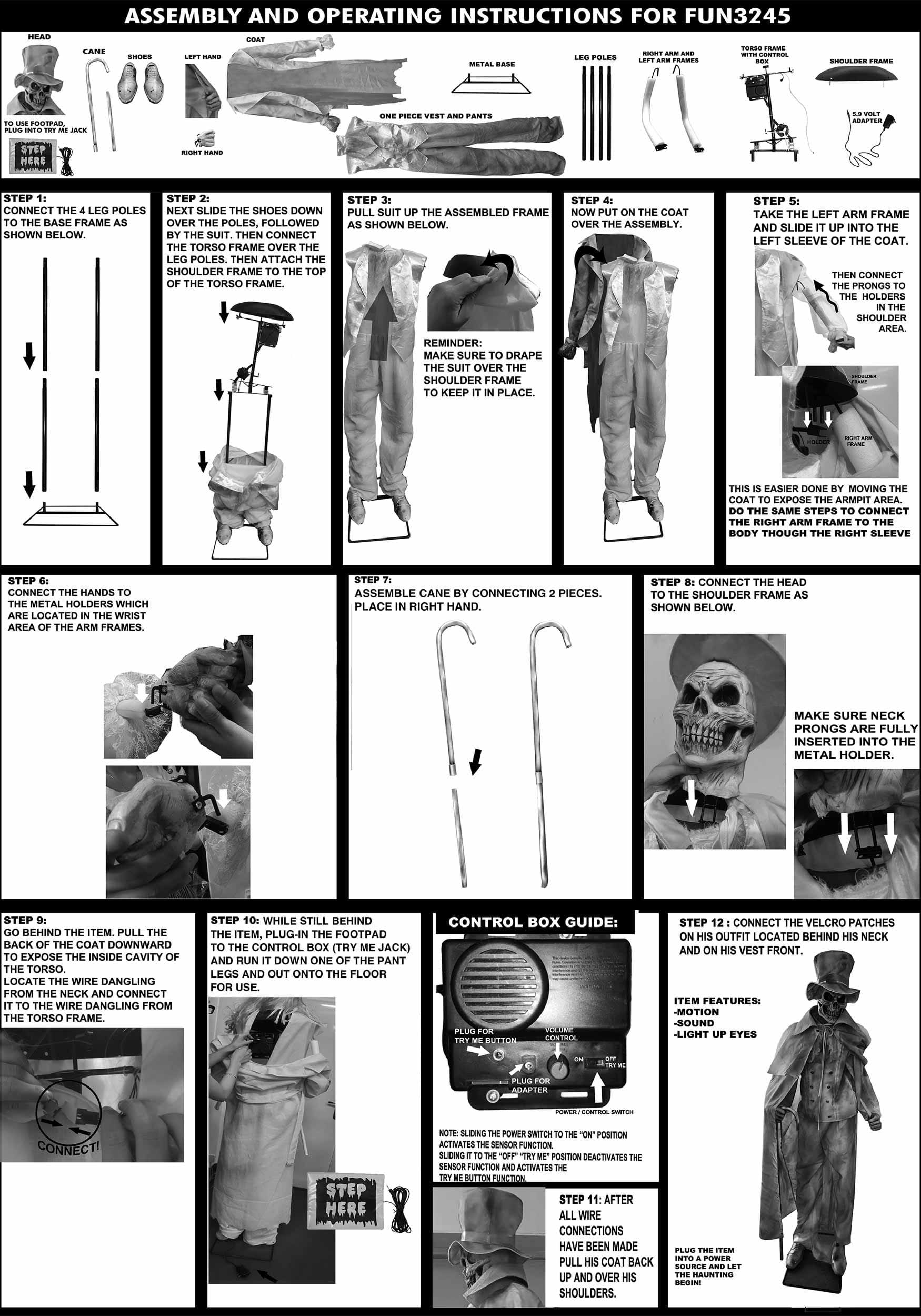 - Eyes and skull on staff light up, arms move and body sways