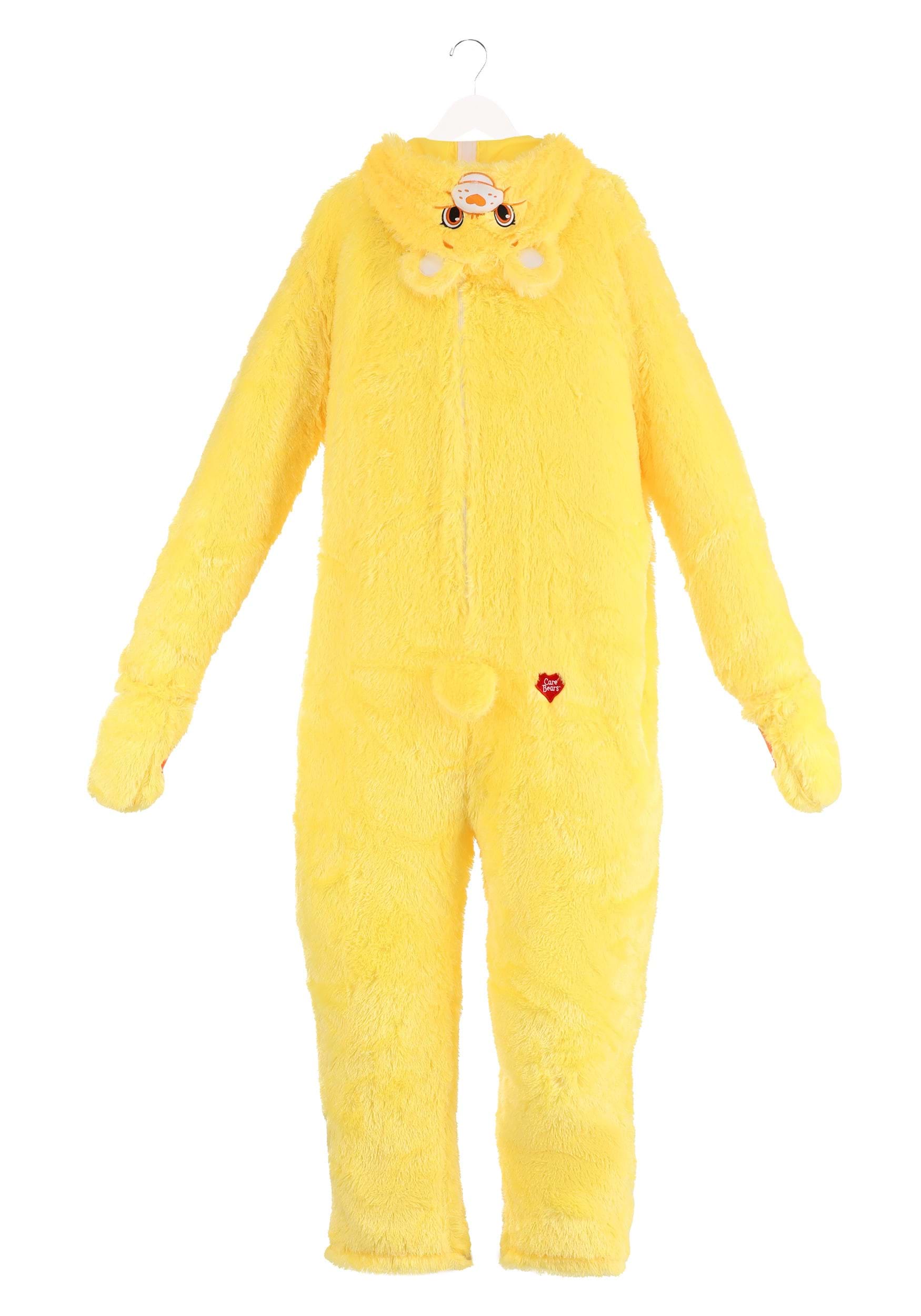 Your vacation is sure to rock but you can't spend the rest of your life in the clouds, you'll need to come back sometime. Make your transition to normal life easier with this Funshine Bear costume. This officially licensed look is a Made by Us favorite thanks to the energy that comes naturally from it! How can you be sad when there's a sun on your belly? The bright yellow jumpsuit features an attached hood, mittens, and shoe covers for that full bear aesthetic. So suit up and head out, it's always a good time when Funshine is around!