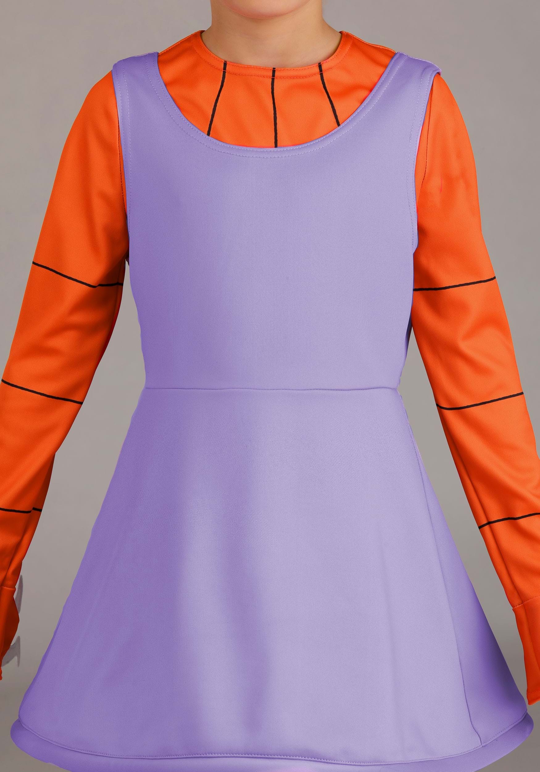 The dress has a purple knit design with an attached orange long-sleeve shirt, giving it the same layered look Angelica wears in the show. Matching leggings feature oversized green polka dots printed on bright blue fabric, and the stretchy waistband keeps them comfortable through snack breaks and costume parades. Orange socks are included to tie it all together.