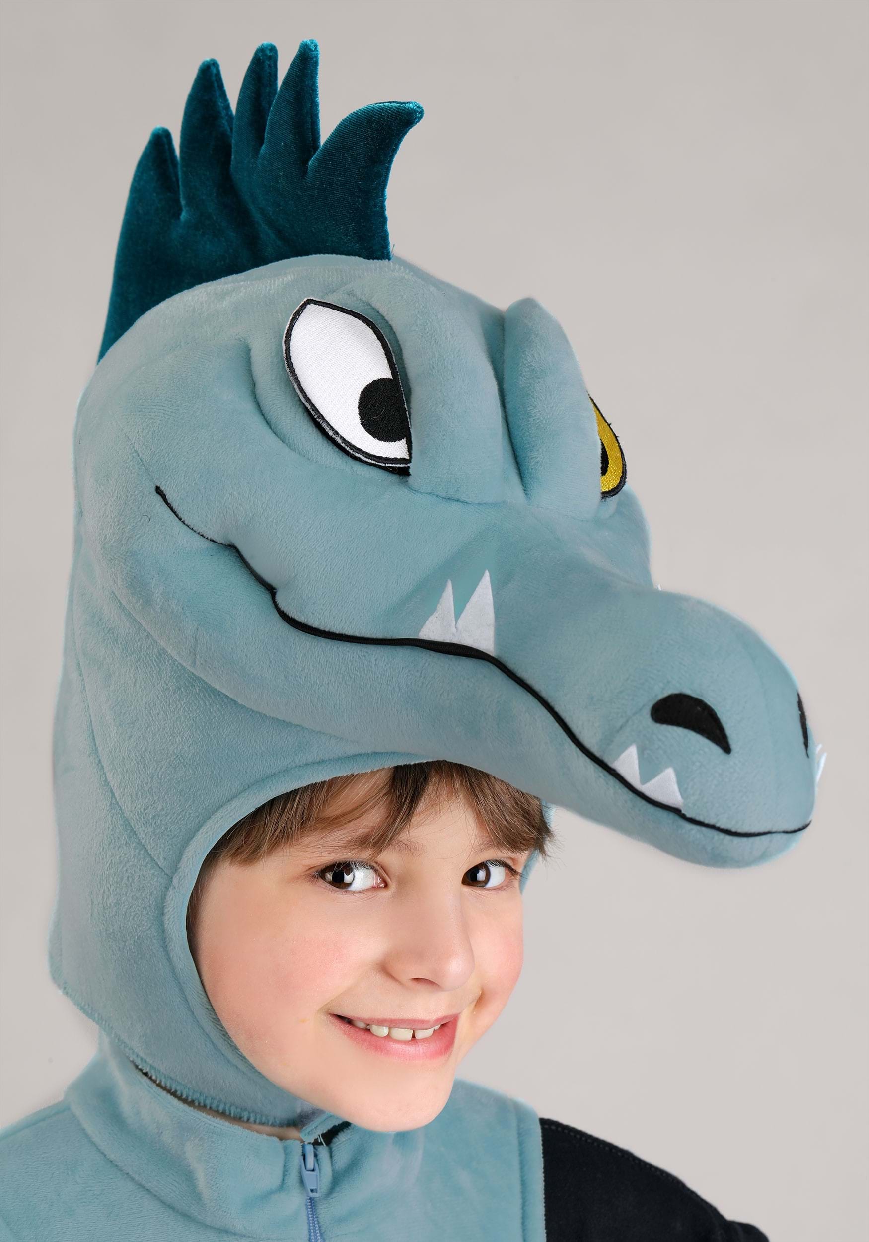 - Foam and minky headpiece has fiber filling for 3D look, felt fabric teeth and nostrils, velvet and foam fin on the top