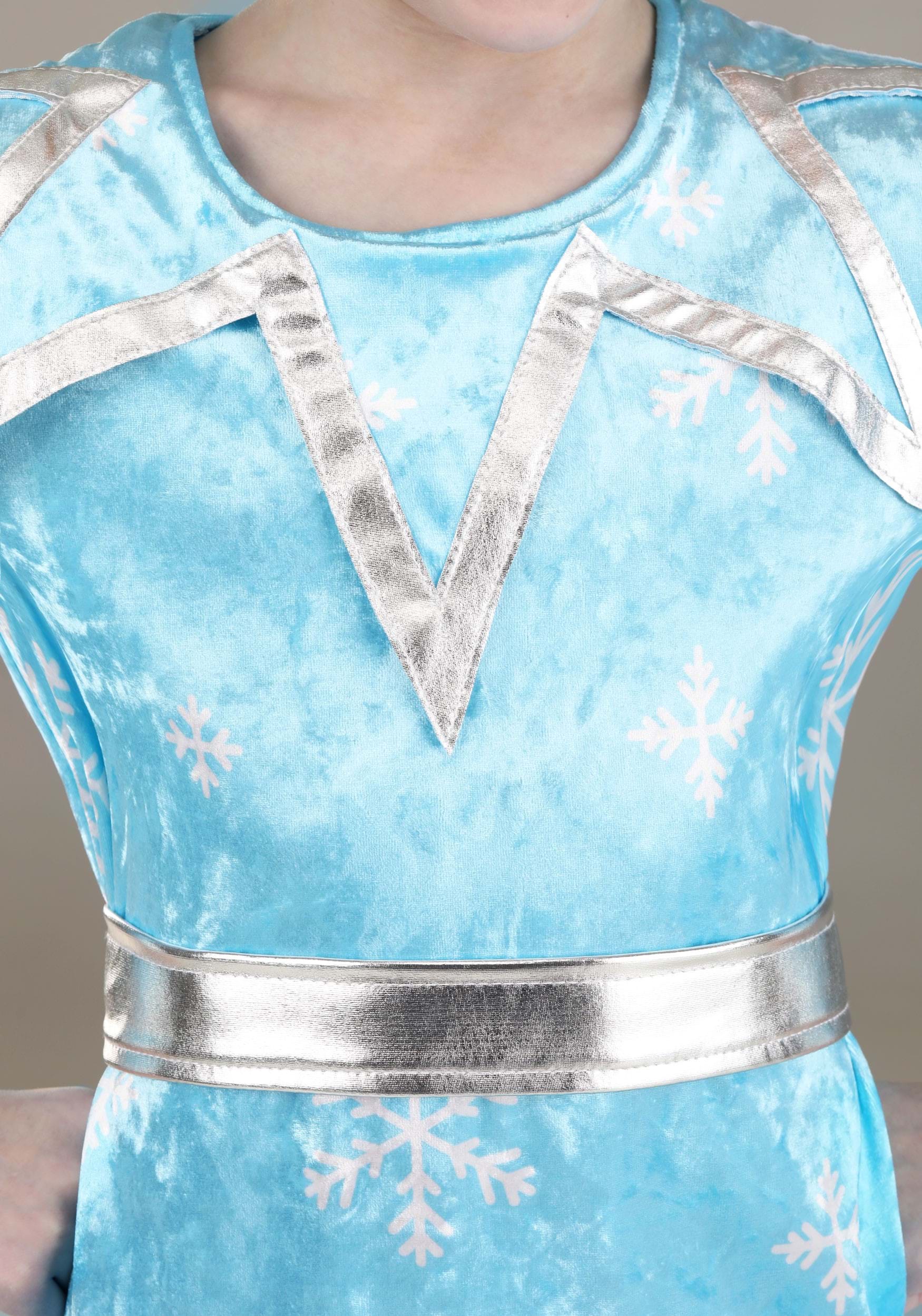 - Shirt has pointed collar, sleeve cuffs, & hemline, all edged w/ band of metallic silver fabric