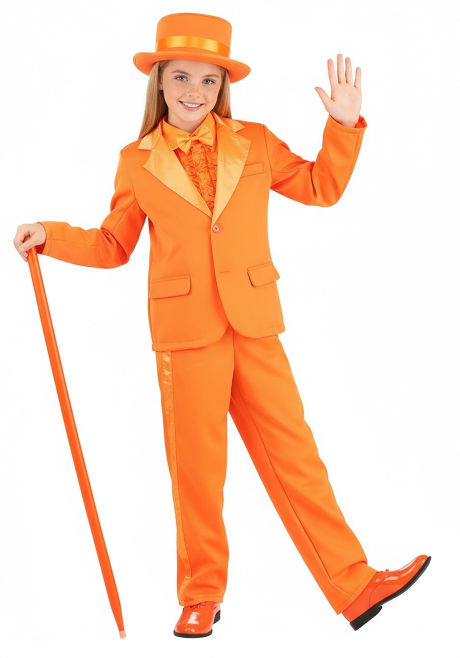 Well, we can help curve some of the more crazed antics and ensure that your tyke makes it on YouTube only because of their extraordinary style. A great and vivid way to go is with this Kid's Orange Tuxedo. We could basically just say, 'Your kid will practically glow,' and leave it at that, but it is worth mentioning that you're looking at a polyester twill and satin tux with a comfy elastic waist, ruffled shirt, and polyfoam top hat that'll literally redefine style. Did we mention the fireball orange attention-getting color on this thing? You will never lose your kiddo!