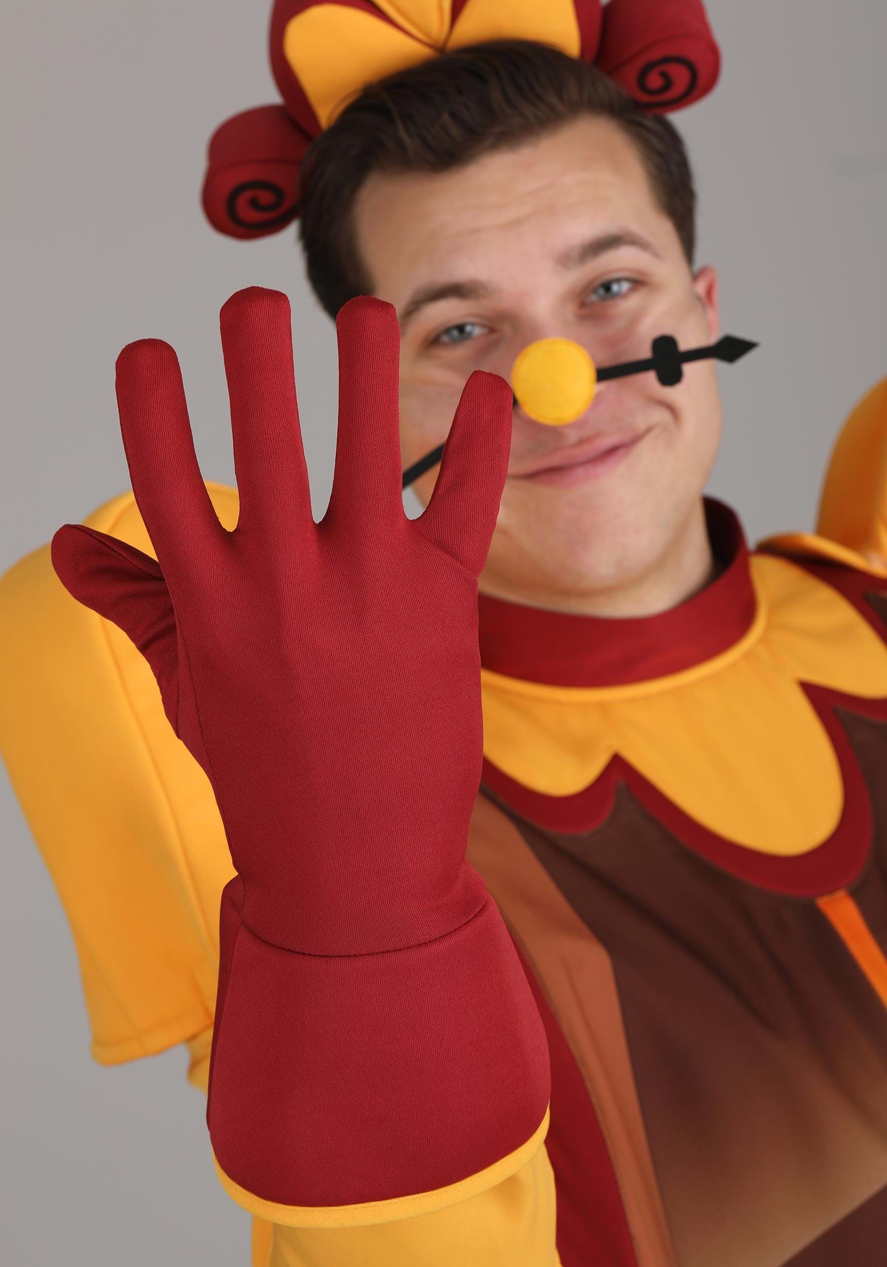 This exclusive Cogsworth costume starts with a brown tunic that falls to your knees. Gold accents at the shoulders and neckline give a splash of color while the printed front has the appearance of Cogsworth's pendulum. (A vinyl cover even gives you a glass-like shine!) Matching pants and gloves complete the ensemble while a foam-backed headpiece tops off the look. Fasten the felt nose piece on your own clock face with the sticky backing and your clockwork mustache will tell everyone it is time for Beauty and the Beast fun. (And if you want to sing a solo, be our guest!)