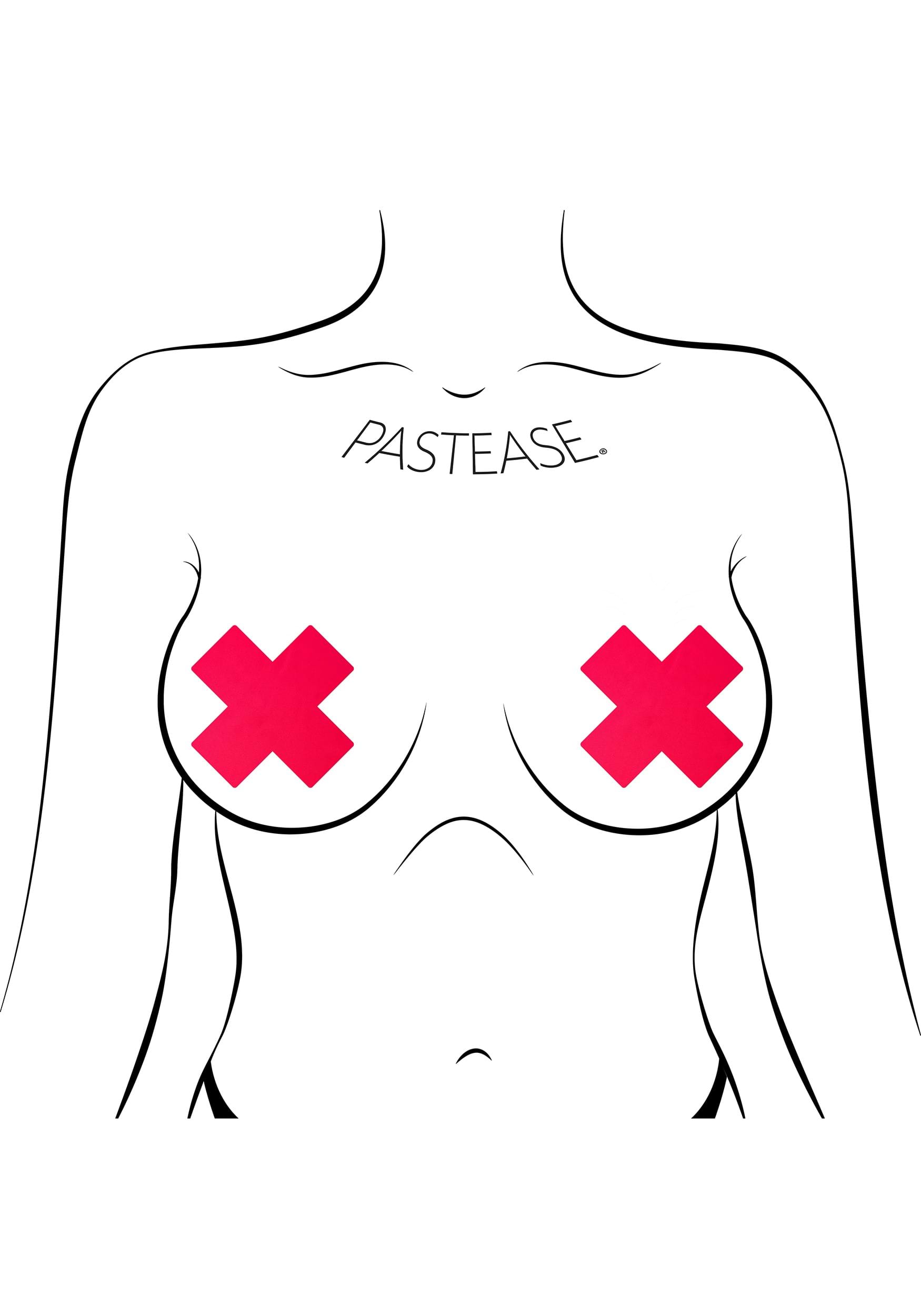 This is a Pastease Plus X Red Neon Cross Pasties.