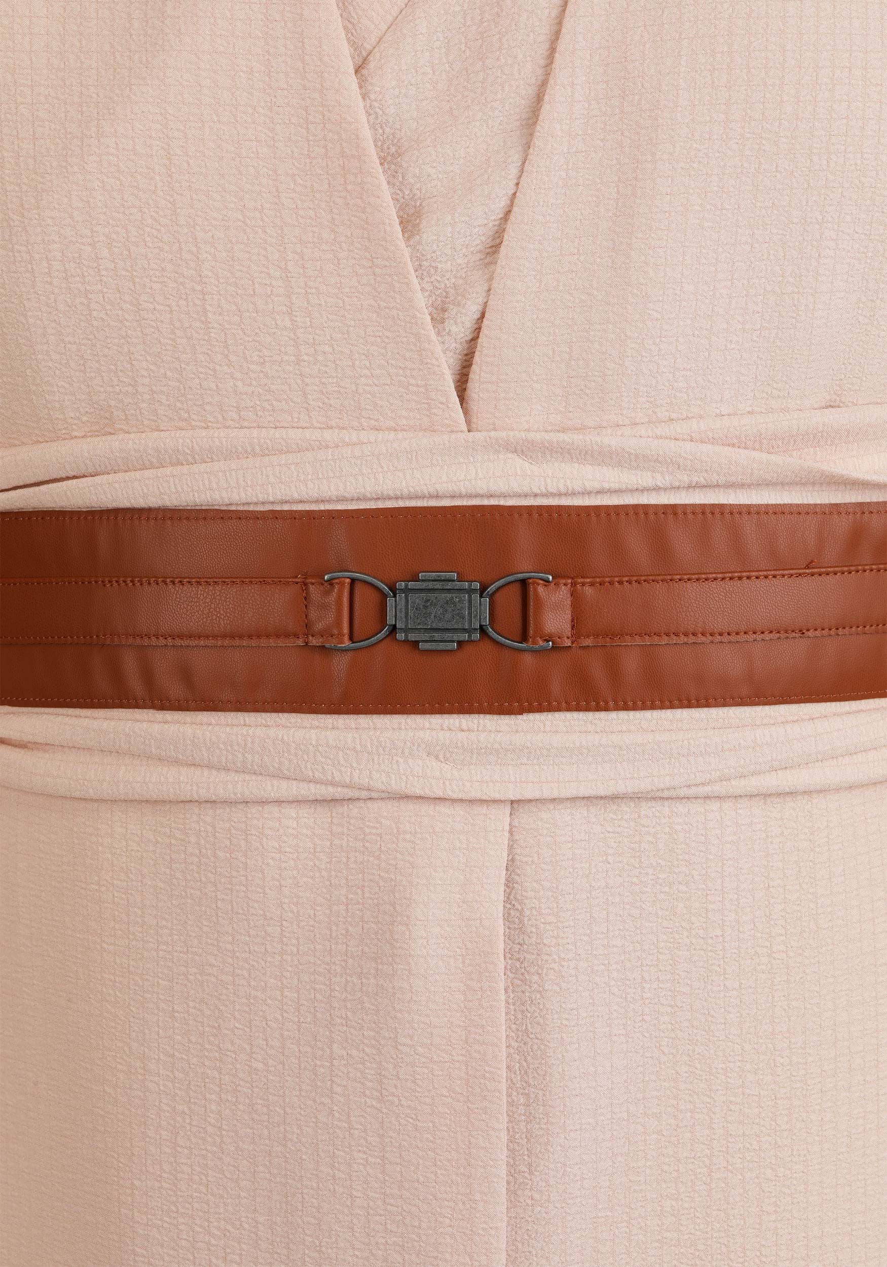 - Vinyl belt has a decorative metal buckle, hook and loop fastener on the back