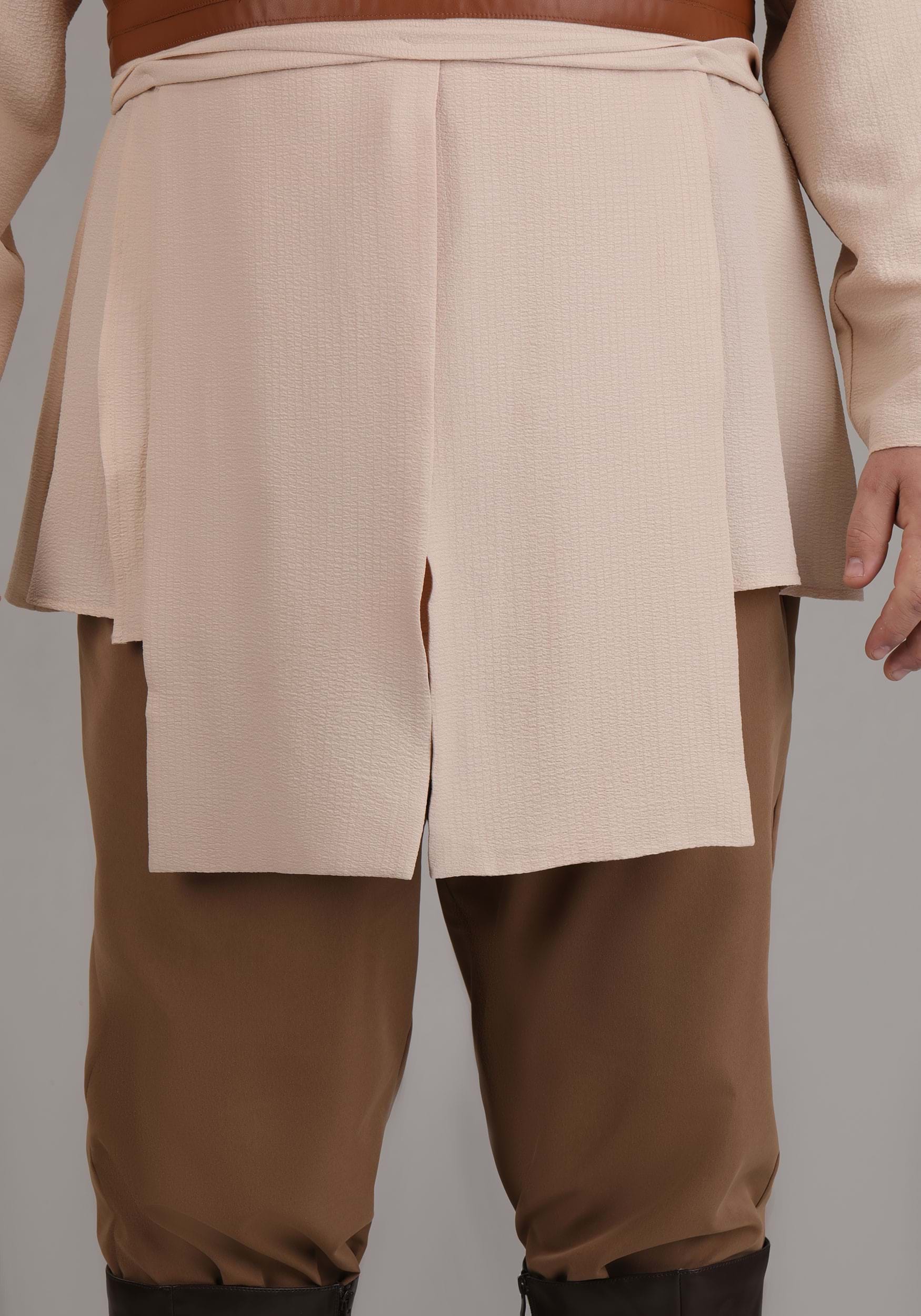 This Deluxe Jedi ensemble brings the classic Jedi silhouette with comfort and thoughtful details. The outer robe is crafted from soft, opaque gauze fabric that drapes elegantly, giving you that wise-warrior energy without weighing you down. Layered shoulder panels create a dimensional effect and, inside, you'll find hidden torso ties to keep the tunic secure. A matching dickie slips on easily, completing the layered neckline without the extra bulk.