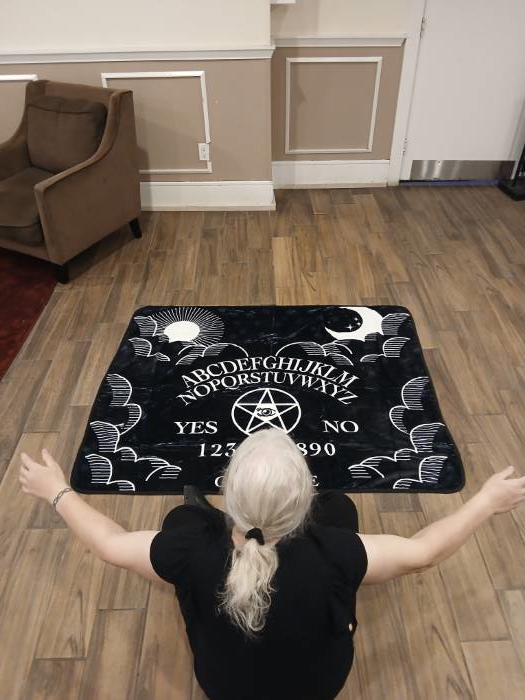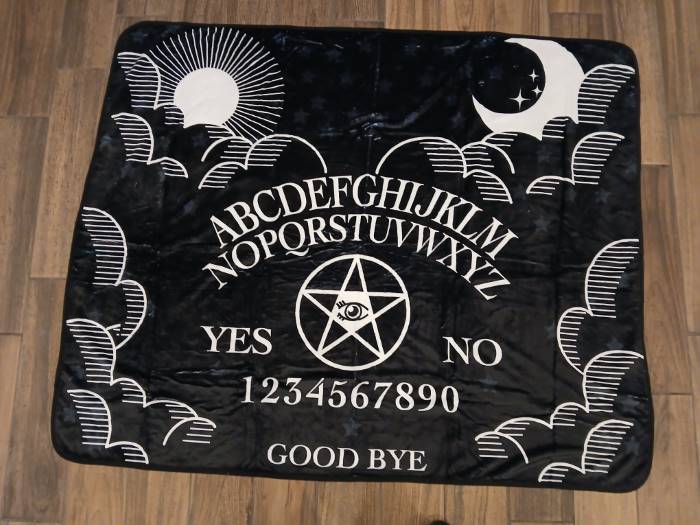 Typically we have two goals when designing a living space. It should fit our aesthetic and be comfortable. If you like minimalism and neutrals, meeting the goals can be very easy. But if you enjoy something more macabre—decorative skulls, all shades of black and red, lace, candles, cozy clutter—ensuring your space is comfortable for everyone can be trickier. Luckily, our exclusive Spirit Board Comfy Throw Blanket exists and promises to summon spooky comfort for any home!