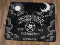 Get comfy with your witchy style when you add this unique microfiber fleece blanket to your décor! Measuring approximately 60" x 48", the super-soft throw blanket is great for wrapping up for a nap or sharing across laps. A black-and-white pattern featuring an alphabet, simple phrases, and classic spirit board symbols is printed on the front, leaving the blanket's back a calm and clean white. The blanket is finished with rounded corners and a simple black binding that adds to its sleek look and durability.
