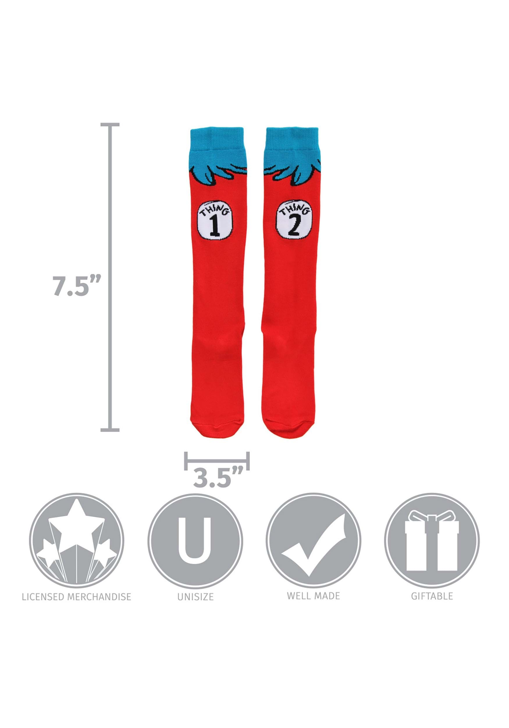 This is a pair of Thing 1 & 2 Costume Adult Socks.