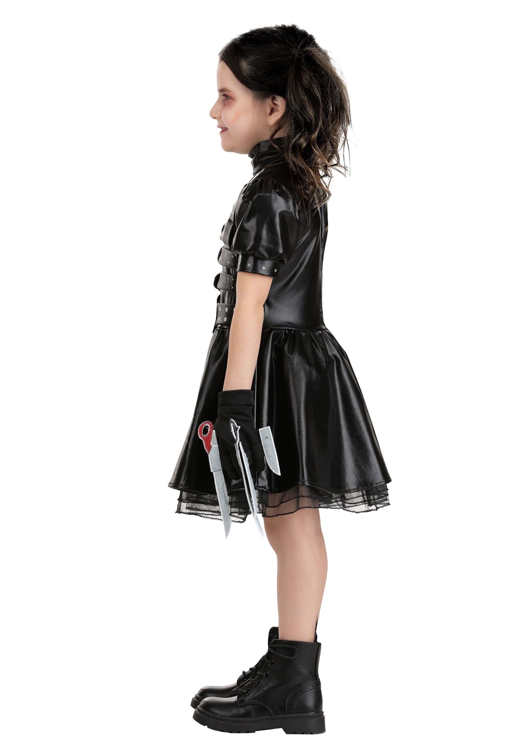 This Toddler Edward Scissorhands Costume Dress is a miniature masterpiece of gothic charm and cozy comfort. The dress itself is made from four-way stretch faux vinyl, so your little one can toddle freely without feeling restricted by their brooding aesthetic. Inside, a satin liner keeps things comfy, while the back zipper makes getting dressed as simple as possible.