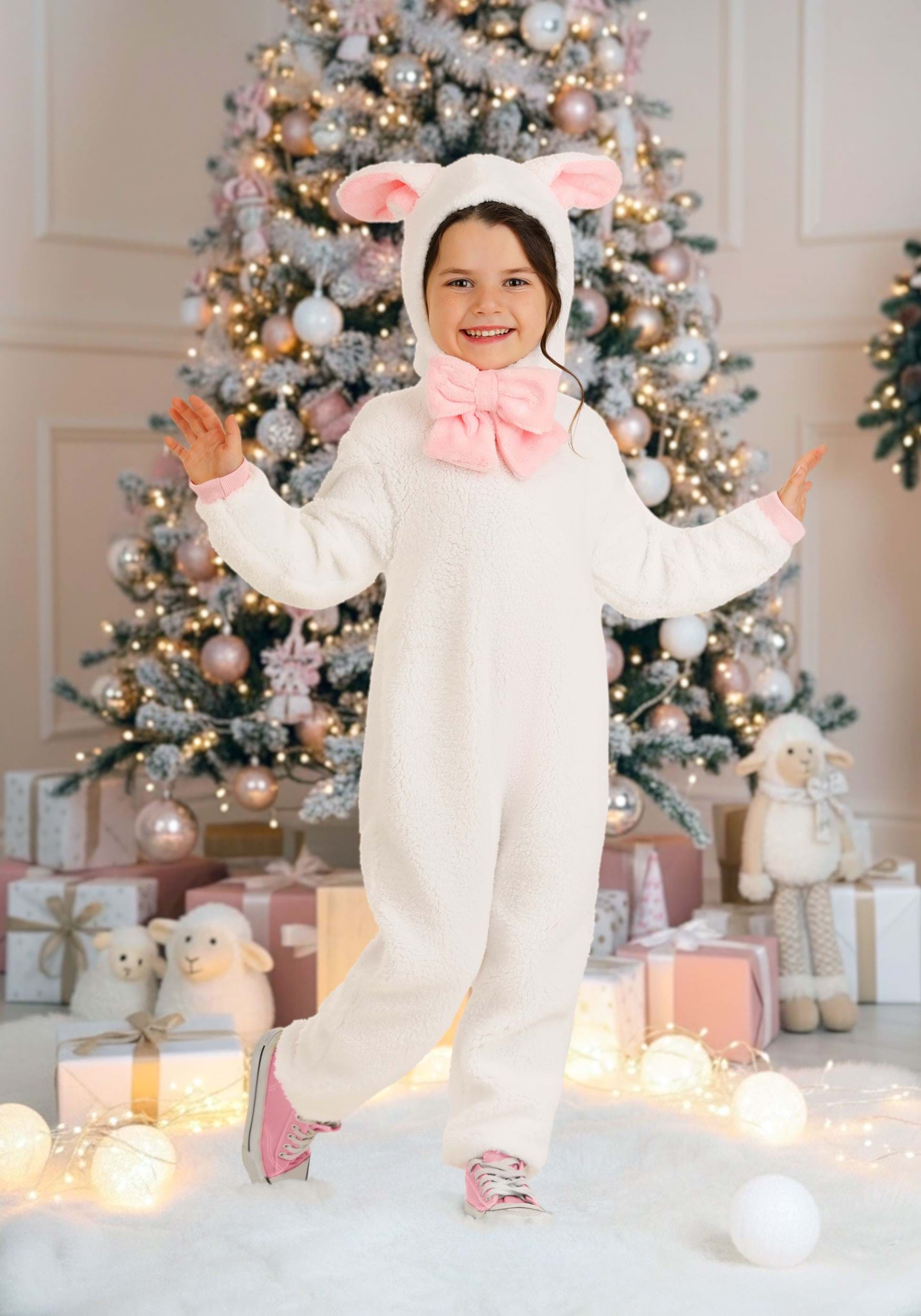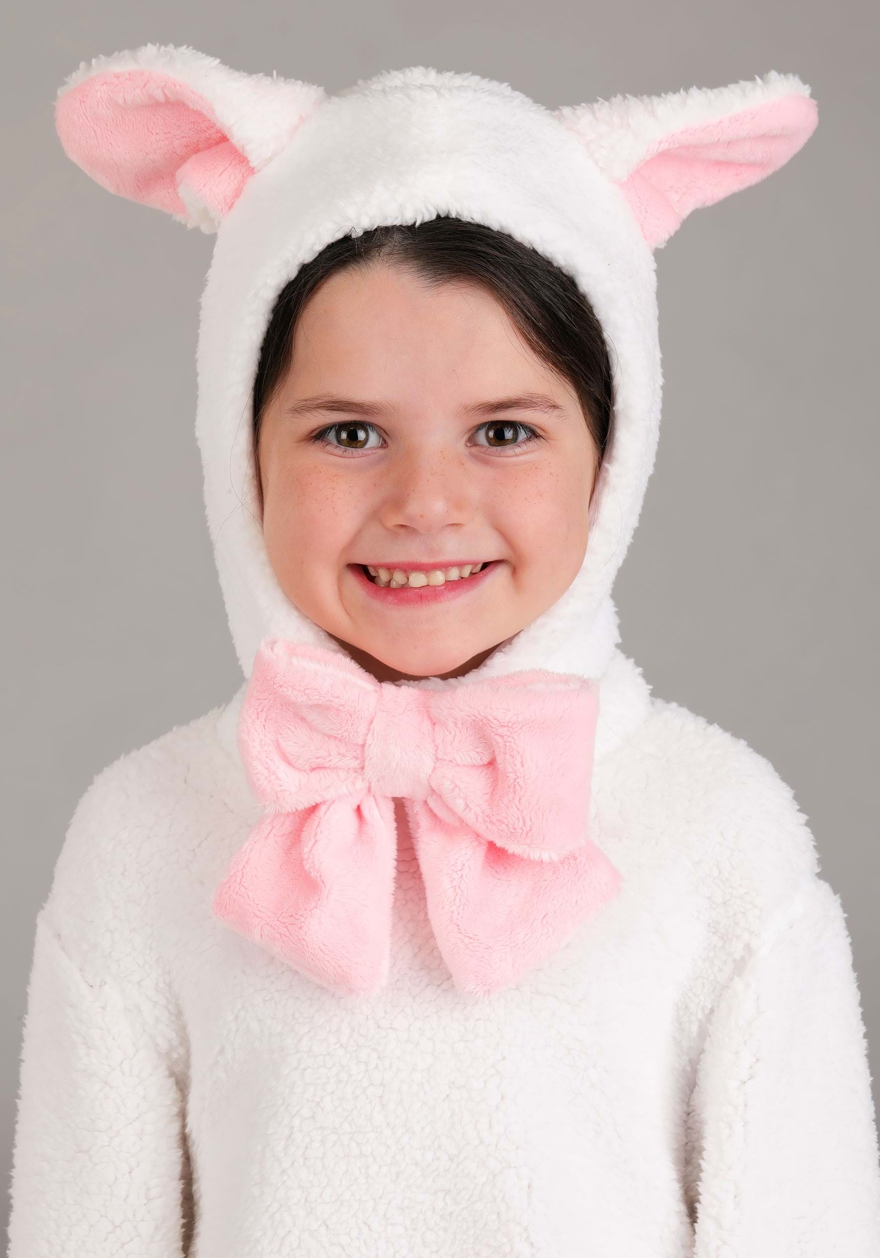 The matching headpiece has everything a little lamb could want: plush ears, soft sherpa fabric, and a ridiculously oversized pink bow that basically screams “cast me as the cutest character in this production.” It secures easily and stays comfy, even through all the bouncing and baa-ing.